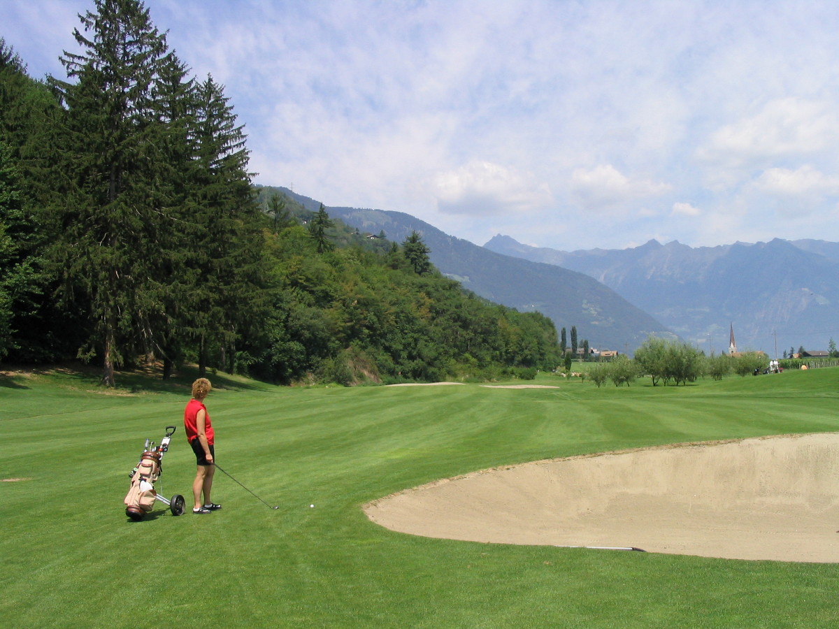 9 Loch Platz, in einem Tal gelegen. Um den Golfplatz herum und auch mittendrin stehen Apfelbäume. Auf dem Anfahrtsweg fragt man sich manchmal ob man noch auf dem richtigen Weg ist, man muss schon wissen wo man hin will.