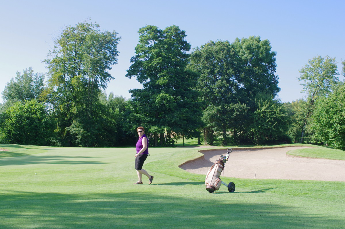 Der Golfplatz liegt auf einem Hügel über der Stadt. Eine schöne Aussicht, aberes kann daher auch ganz schön windig werden. Loch 10 ist ein langes Par 3, aber das Grün befindet sich sehr weit unter dem Abschlag und so reicht doch ein kurzesEisen. Den Bag den Berg hoch schleppen möchte ich aber nicht.