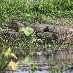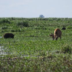 62: aun con yacares cerca esl carpincho nadaba