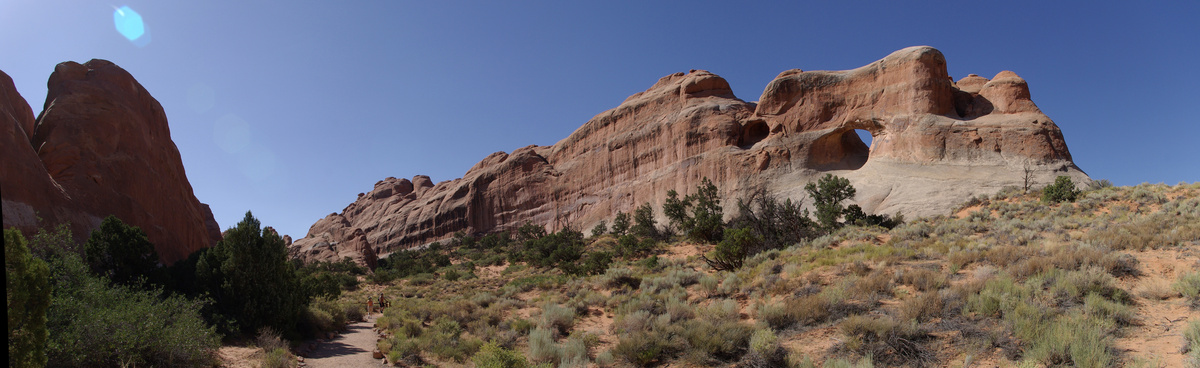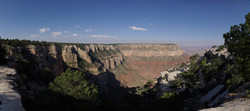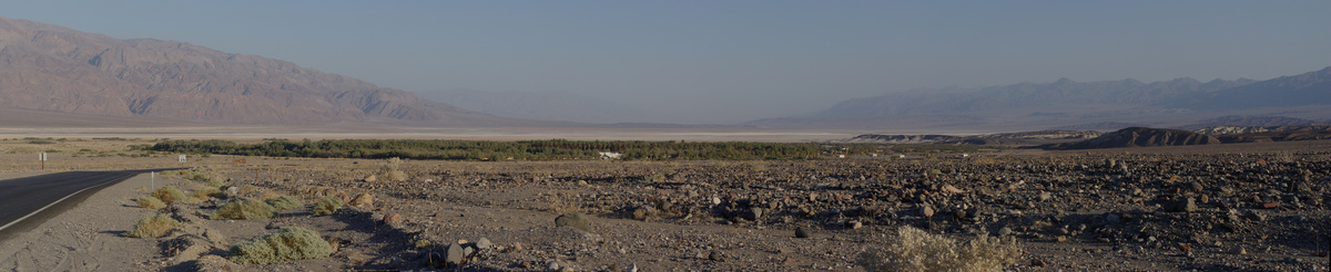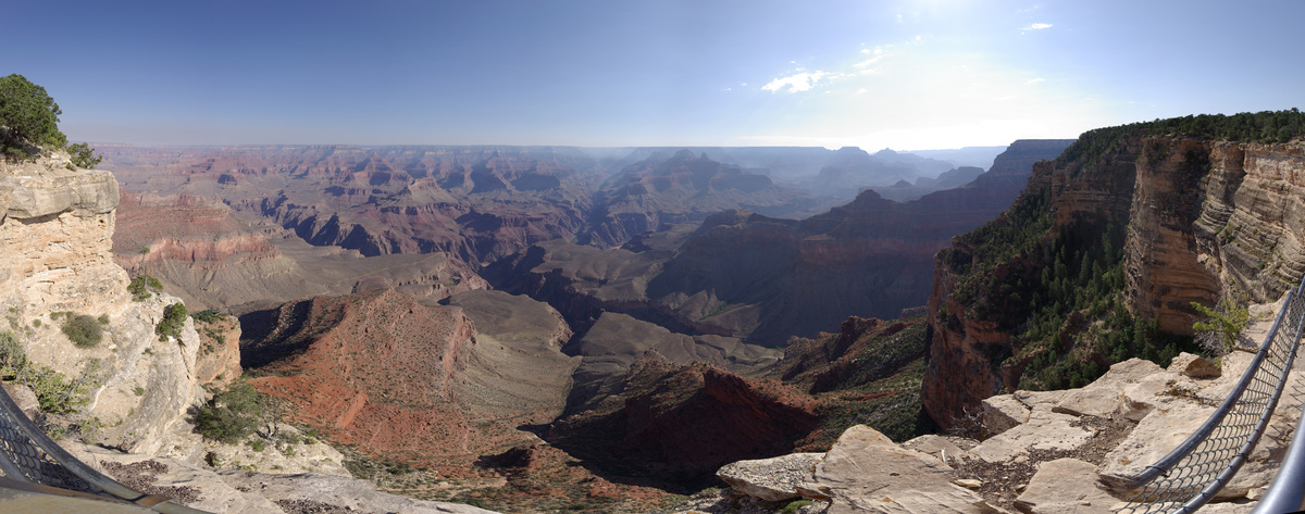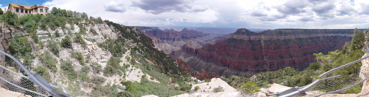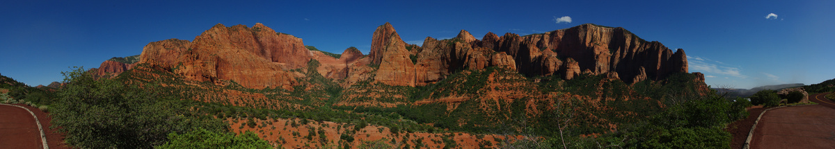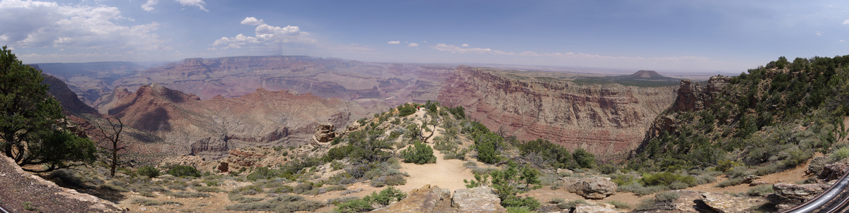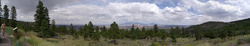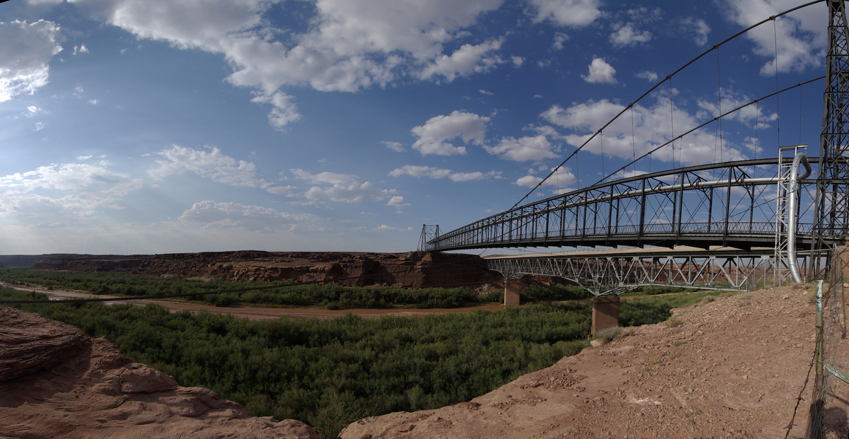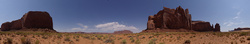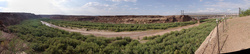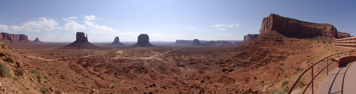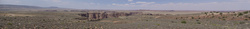 Cameron trading post, gerade Strukturen vor blauen Himmel sind schwer als Pano.