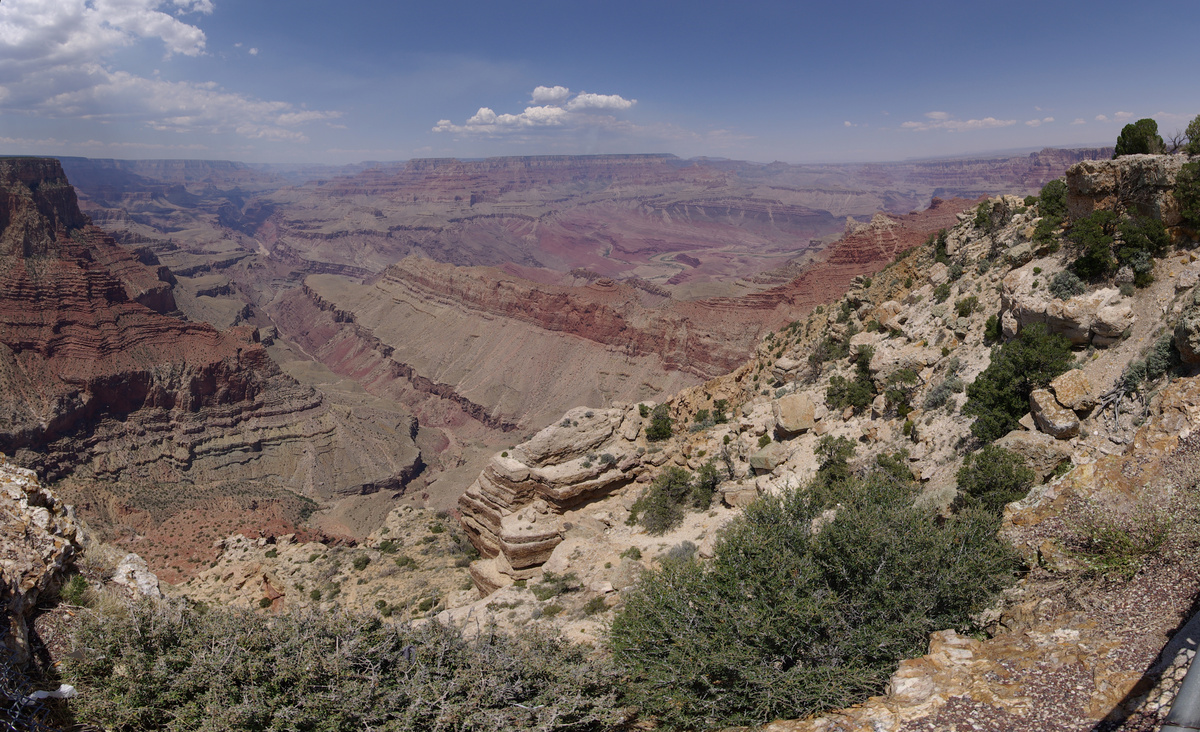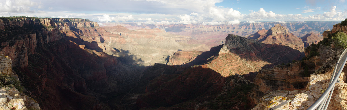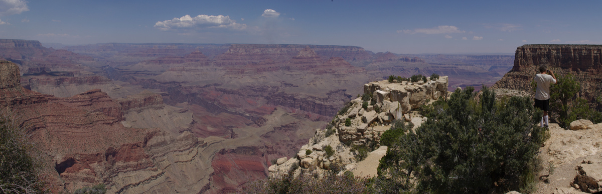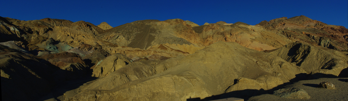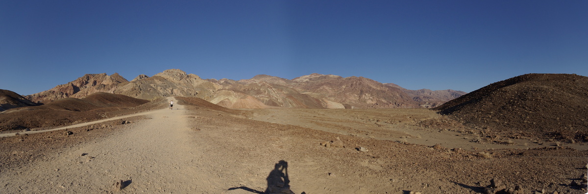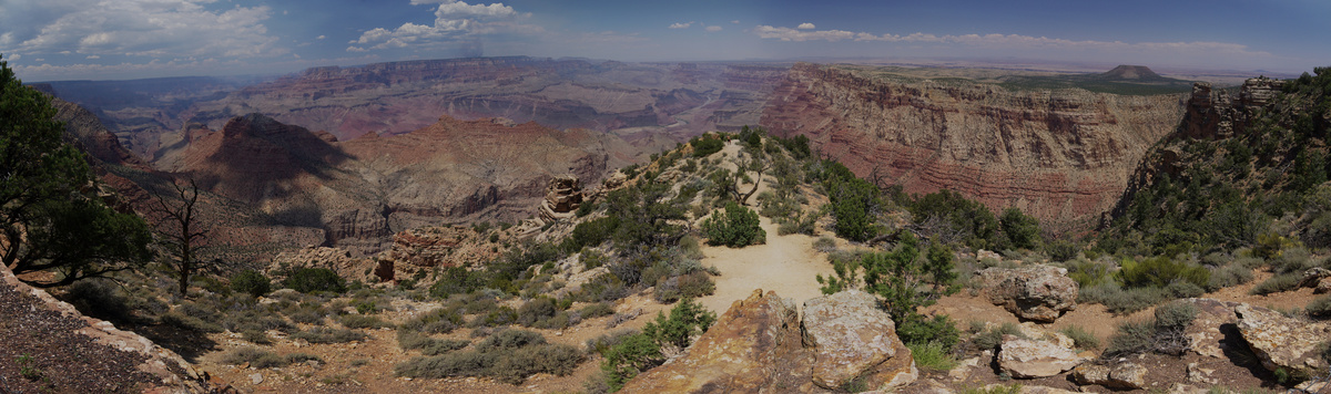 Cameron trading post, gerade Strukturen vor blauen Himmel sind schwer als Pano.